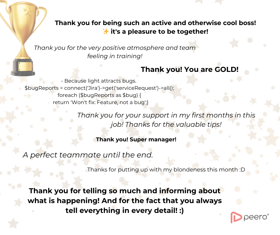 *To encourage employee participation in Peero, a monthly employee motivation system was created, where the most recognized employees in various subgroups are awarded the company’s internal virtual currency called “Beer coins”. These coins can be used in the “Beer coin” store where employees can exchange them for different rewards.